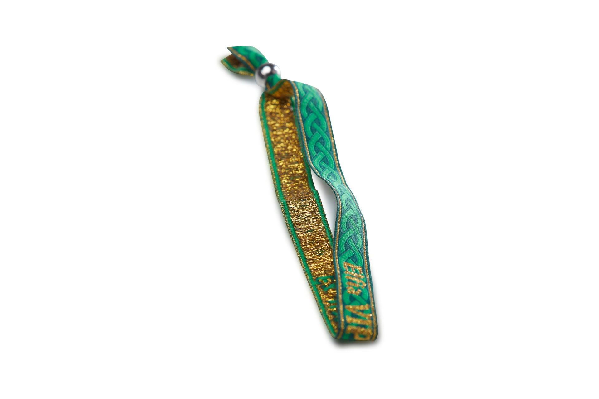 Personaliseer je gevlochten armband met goud- en zilverkleurige strengen. De standaardmaat is 350 x 15 mm, maar kan naar wens worden aangepast met de clip.